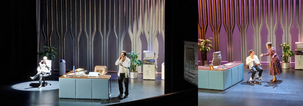 „…In der Regie von Angelika Zacek, auf der Bühne von Jochen Schmitt und in den Kostümen von Ursina Zürcher entfalten die Dramolette als bissiger Kommentar – herzhaft gespickt mit diabolischem Humor – die Zusammenhänge von Arbeitswelt und privatem Glück…“